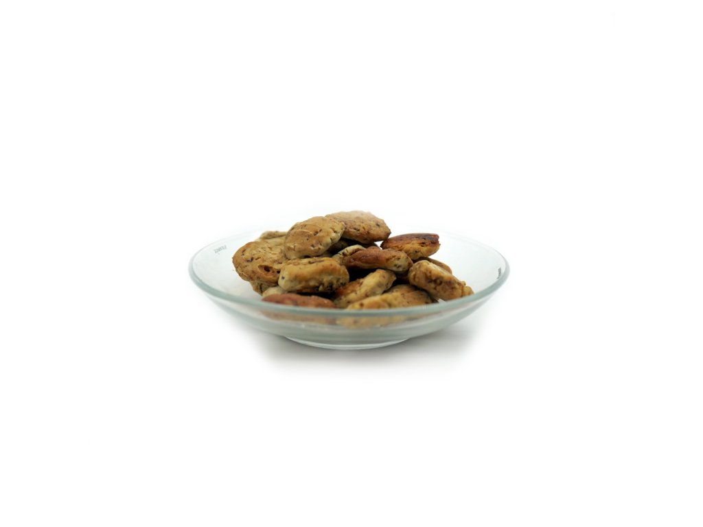 Zvláštní odměna pro Vašeho psa! Psí sušenky bez obilovin a lepku. Vyrobeno ručně, výhradně z čerstvého králičího masa, s čerstvými sladkými brambory, ovocem, zeleninou, lososovým olejem a brusinkami. Perfektní odměna pro alergické psy nebo pro psy se špatným trávením. Psi s nadváhou dostávají lehké a zdravé pamlsky. Velikost: cca 1,6 cm - 1,8 cm