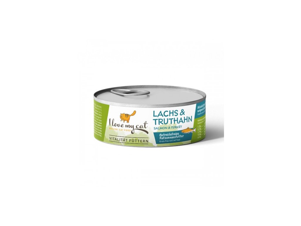 Masová konzerva pro kočky s lososem a krůtím masem. Zajišťuje zdravé trávení a lesklou srst. Žádná přidaná barviva, chutě ani konzervační látky.