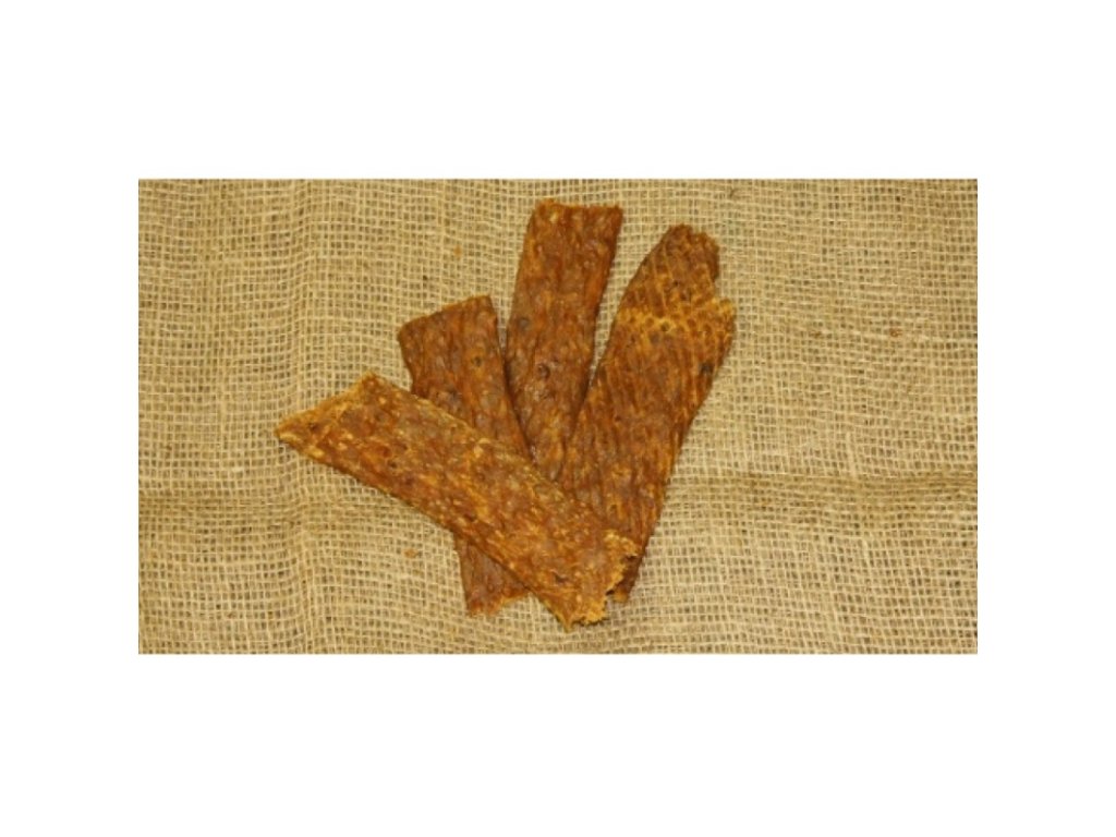 Naše pochoutka ze sušeného masa je vyrobena z jemně sušeného, šťavnatého 100% krůtího masa, bez umělých přísad a příchutí.