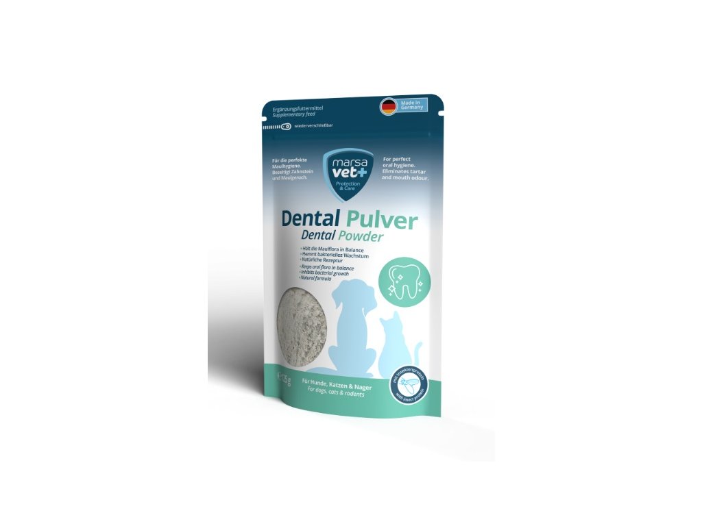 Dental prášek lze přímo nasypat na krmivo vašich mazlíčků a nabízí samočisticí funkci díky aktivní účasti zvířat při krmení. Je vhodný pro alergiky a je dobře snášen. Účinná prevence proti zubnímu kameni a plaku, snižuje zápach z tlamy u psů a koček. S Dental práškem na zuby si vybíráte zodpovědnou cestu k podpoře ústní hygieny vašich mazlíčků. Věřte složení, které kombinuje přírodní složky a vědecky prokázanou účinnost, aby vašemu mazlíčkovi zajistilo zdravý úsměv.