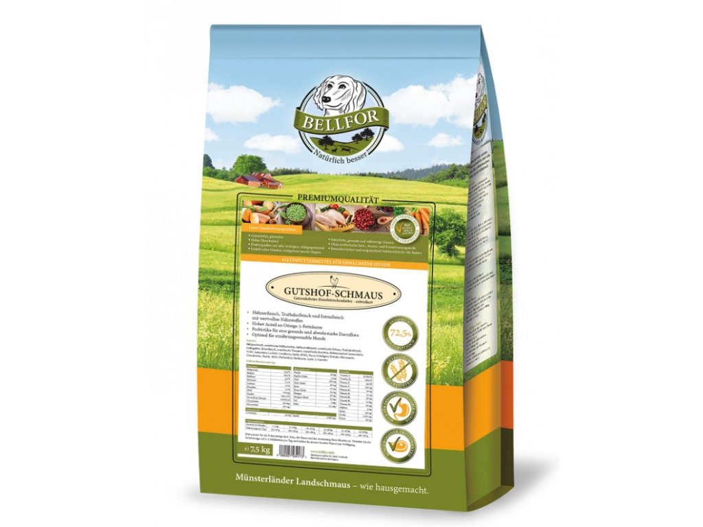 - 72,5% čerstvého masa s hodnotnými živinami ( kuřecí maso: 50%, krůtí maso: 11,25%, kachní maso: 11,25%)