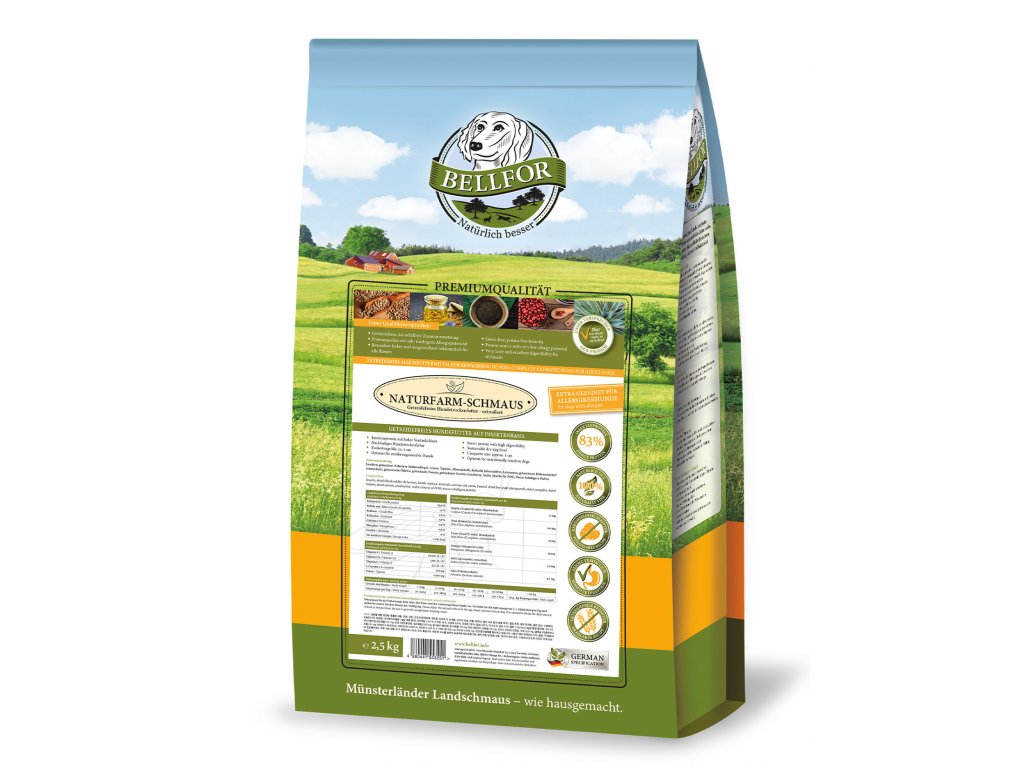 Psi jsou závislí na dostatečném přísunu živočišných bílkovin. Mouchy bráněnky (Hermetia illucens) použité v krmivu Naturfarm-Schmaus jsou kvalitní alternativou masa nebo ryb. Hmyzí bílkovina se vyznačuje vysokou biologickou hodnotou a komplexním aminokyselinovým profilem. Obsahuje všechny esenciální aminokyseliny a je pro psy velmi snadno stravitelná.Vzhledem k tomu, že se při chovu hmyzu spotřebuje podstatně méně zdrojů než při konvenční produkci masa, přispívá použití bráněnek, jako složky krmiva pro psy, také významně k ochraně životního prostředí.
