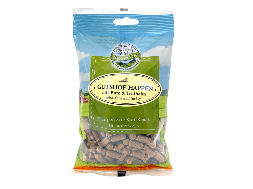 Naše měkké kousky Gutshof-Happen je zdravá odměna pro vašeho psa. Ideální jako odměna při výcviku, nebo jako pamlsek.