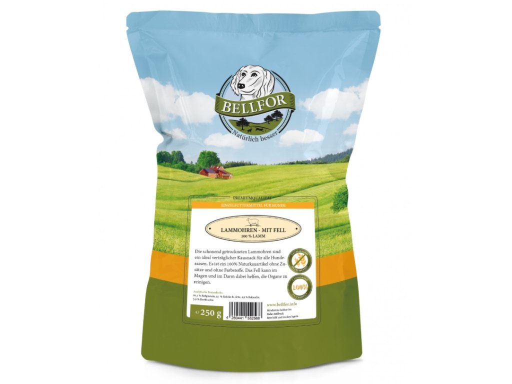 Jemně sušené jehněčí uši se srstí jsou ideálně kompatibilní s psími lahůdkami pro psy s citlivým zažíváním.
