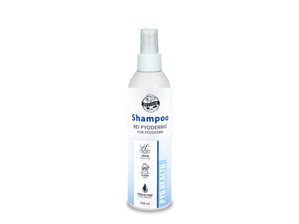 V závislosti na příčině a závažnosti pyodermie je obvykle nutné podávat antibiotika, nebo používat šampony obsahující antibiotika. Kromě toho doporučujeme používat šampon pro psy Bellfor Pyo-Health pro doprovodnou péči při terapii. Šampon se skládá z přírodních povrchově aktivních látek a pečlivě vybraných vysoce kvalitních olejů, jako je olivový a kokosový olej, které zajišťují co nejšetrnější aplikaci.